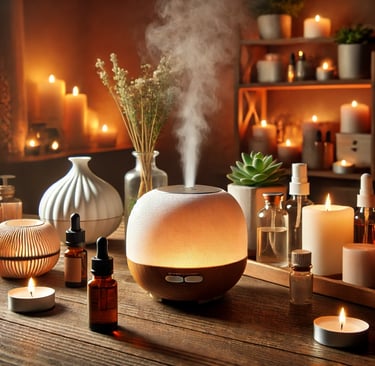 Além de perfumar a casa, difusores de ambiente com design elegante complementam a decoração. Escolha aromas como lavanda para um efeito relaxante ou óleos cítricos para energia e vitalidade.